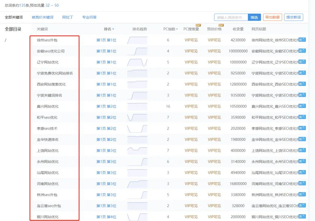 客戶關(guān)鍵詞排名情況: